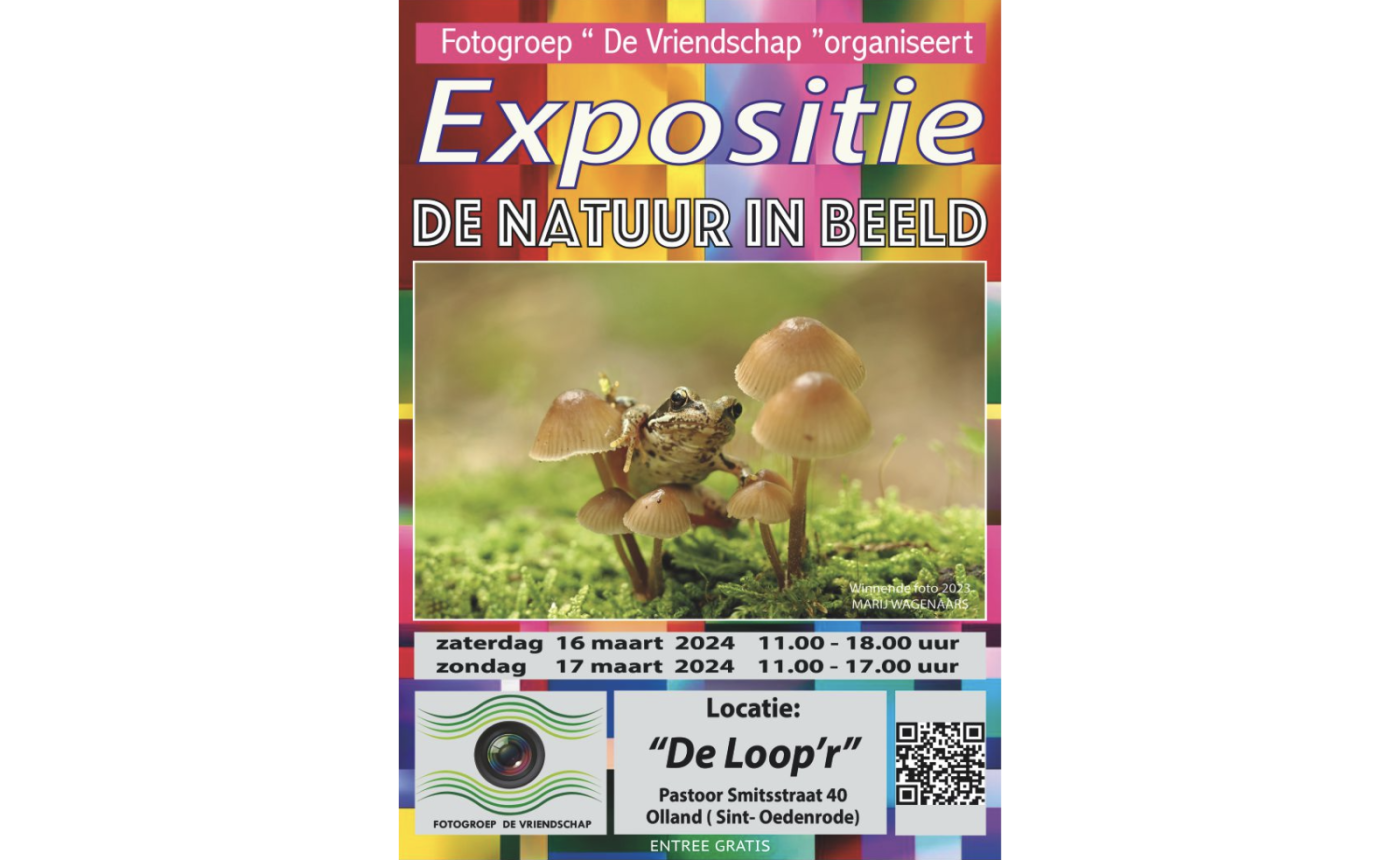 De expositie toont zo’n 66 foto’s. De werken zijn zeer divers, variërend van macro-opnamen van insecten en planten tot foto’s van weidse landschappen. De expositie is open zaterdag 16 maart van 11.00 uur tot 18.00 uur en zondag 17 maart van 11.00 uur tot 17.00 uur en is gratis te bezoeken. Tevens wordt er een publieksprijs uitgereikt. Graag nodigen we u als bezoeker uit om uw stem uit te brengen voor de drie mooiste foto’s van de expositie. De winnende fotograaf ontvangt de Publieksprijs 2024. Ook u kunt iets winnen: een foto naar keuze. U kunt een lotje kopen om hieraan mee te doen. Op zondagmiddag 17.00 uur wordt het winnende lot getrokken. De winnaar wordt persoonlijk op de hoogte gesteld. Voor de jongste bezoekers is er een fotospeurtocht, waar basisschoolkinderen gratis aan kunnen deelnemen.